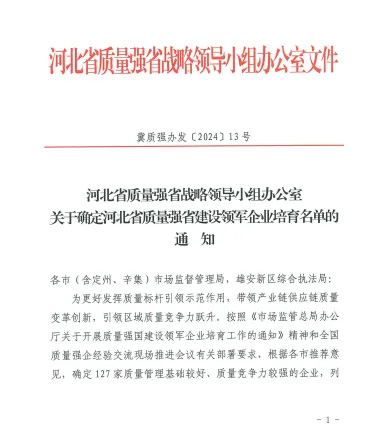 該資質旨在更 好發(fā)揮質量標桿引 領示范作用,帶領產(chǎn)業(yè)鏈供應鏈質量變革創(chuàng)新,引 領區(qū)域質量競爭力躍升。入圍該名單標志著公司質量管理基礎較好,質量競爭力較強,在開展質量分析、實施標桿管理,不斷追求卓 越等方面優(yōu)先獲得資源支持,助力企業(yè)不斷提高質量管理水平和質量競爭力。